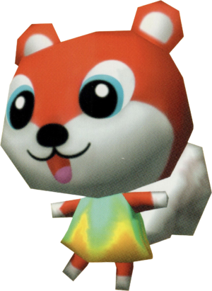 Kit(キット, kitto) is a jock squirrel villager in the Animal Crossing series but he only appeared in Dōbutsu no Mori e+. Kit has a jock personality and has a great interest in sports and bodybuilding. Jock villagers are hyperactive and motivated, but often come across as self-centered and dense. As a jock villager, Kit is very interested in his hobby, and may compete against the player at catching bugs and fish.