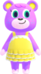 There are sixteen bear villagers so far, 10 of which are male and only 6 of which are female, making bears a predominantly male species. Of the sixteen bear villagers in the Animal Crossing series, two are peppy, two are lazy, one is a jock, two are smug, three are sisterly, five are cranky and one is normal. All sisterly bears appeared in previous titles and were of different personalities; Charlise and Paula were previously peppy, and Ursala was previously snooty. Due to this latter fact, there are currently no snooty bears. Additionally, Dozer is the only bear to not make an appearance in Animal Crossing: New Horizons.
